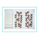 Inpakpuzzel bestaande uit 11 stukjes, die in twee lagen in een doos verpakt moeten worden. De stukken van de bovenste laag worden veel ondersteboven geplaatst. Elk stuk bestaat uit 2-4 kleine kopjes, dit zijn snoepjes met een chocoladebodem en een aardbeientop.