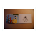 Geanimeerde optische illusies. Sneeuwwitje. Er is een stuk zwart gestreept papier in het boek, houdt dit plat voor de zwart wit plaatje en beweeg het langzaam naar één kant en de plaatjes gaan bewegen. Made in China