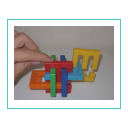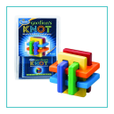 Gordian's Knot Om de zes verschillende gekleurd stukken uit elkaar te halen zijn minstens 69 bewegingen nodig. De bedoeling is om de stukken zodanig te verschuiven, zodat de stukken één voor één uit de knoop gehaald kunnen worden. De uitdaging is om te ontdekken wat de juiste zetten zijn om het doel te bereiken. Deze puzzel is bedacht door de Nederlander 'Frans de Vreugd' als je er toch niet uitkomt, of je krijgt het niet meer in elkaar, is er boekje bij met de oplossingen voor beide richtingen.