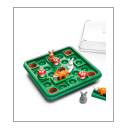 Spring over andere konijnen, paddestoelen en vossen, totdat alle konijnen veilig in een hol zitten. Een origineel puzzelspel met 60 opdrachten in een handig formaat met deksel, ideaal voor onderweg.