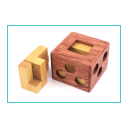 holey box packing puzzleHet doel is om de 12 identieke stukken in de doos te plaatsen. Ze passen alleen door het vierkante gat in de bovenkant van de doos. De ronde gaten zijn er om het manipuleren van de stukken te vergemakkelijken. Er is meer dan één oplossing, maar het is niet zo gemakkelijk te vinden.