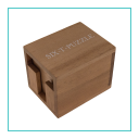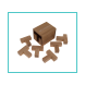 Uit een houten kist kijkt een T-stuk naar buiten. Alles bij elkaar zijn er 6 identieke T-stukken. De opgave is dat alle 6 T-stukken in de doos zitten en niemand kijkt uit de voorkant. Plaats de T s in het vak slim om de bestemming te bereiken. Er zijn drie verschillende oplossingen.