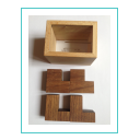 De puzzel bestaat uit een plexistuk, een houten kooi en 4L-vormen om in de doos te verpakken. Om preciezer te zijn, heb je 2 paar L: een soort van L-stuk is een beetje dunner.