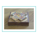 Haal de 12 blokjes uit de doos en plaats ze terug zodat elke gekleurde stip “matched” met dezelfde kleur stip op de aangrenzende blokjes.