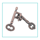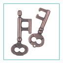 De twee sleutels zijn aan elkaar gelinkt alsof ze altijd samen zijn. Hoe je er ook naar kijkt, het lijkt onmogelijk om ze te scheiden. De sleutels zijn zonder twijfel van elkaar los te krijgen. Dit is een van de beroemdste puzzels die populariteit genoot vanaf zijn creatie tijdens de 19e eeuwse puzzelrage. Het sleutelwoord is "doorgaan".