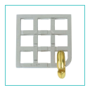Deze puzzel bestaat uit een metalen raster waarin schijnbaar één ring is bevestigd.