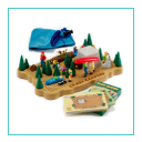 Het spel bestaat uit: Een Camping basis, 11 puzzlestukken