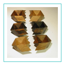 Een schakel van een ketting is in het Grieks "Crercos" zodat deze puzzel een verbinding is van drie van die schakels. Hout: gekleurd Iroko Stukken:6