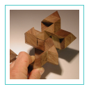 De stukken van deze puzzel zijn ongelijk je moet twee helften maken die je samenvoegt. Het is zoals ze zeggen een gecoördineerde samenvoegende beweging. Hout: Zebrano Stukken: 6