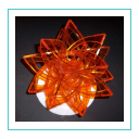 Het wordt geassembleerd van dertig identieke stukken. Elk stuk is een verlengde S-vormige vorm, zorgvuldig berekend om rond in een draaikolk met de andere delen spiraalsgewijs te bewegen en elkaar raken bij hun buitenste uiteinden. Het effect is als een dodecahedron die van dozijn spinnende bloemen wordt geconstrueerd. Tot u het persoonlijk bestudeert, is het moeilijk om te erkennen dat de vorm van elk stuk eenvoudig vlak S is.