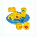 Kies een uitdaging uit het boekje en zoek de blokken kaas met alle muizen staarten zichtbaar naar boven, zoals de uitdaging op het plaatje aangeeft.